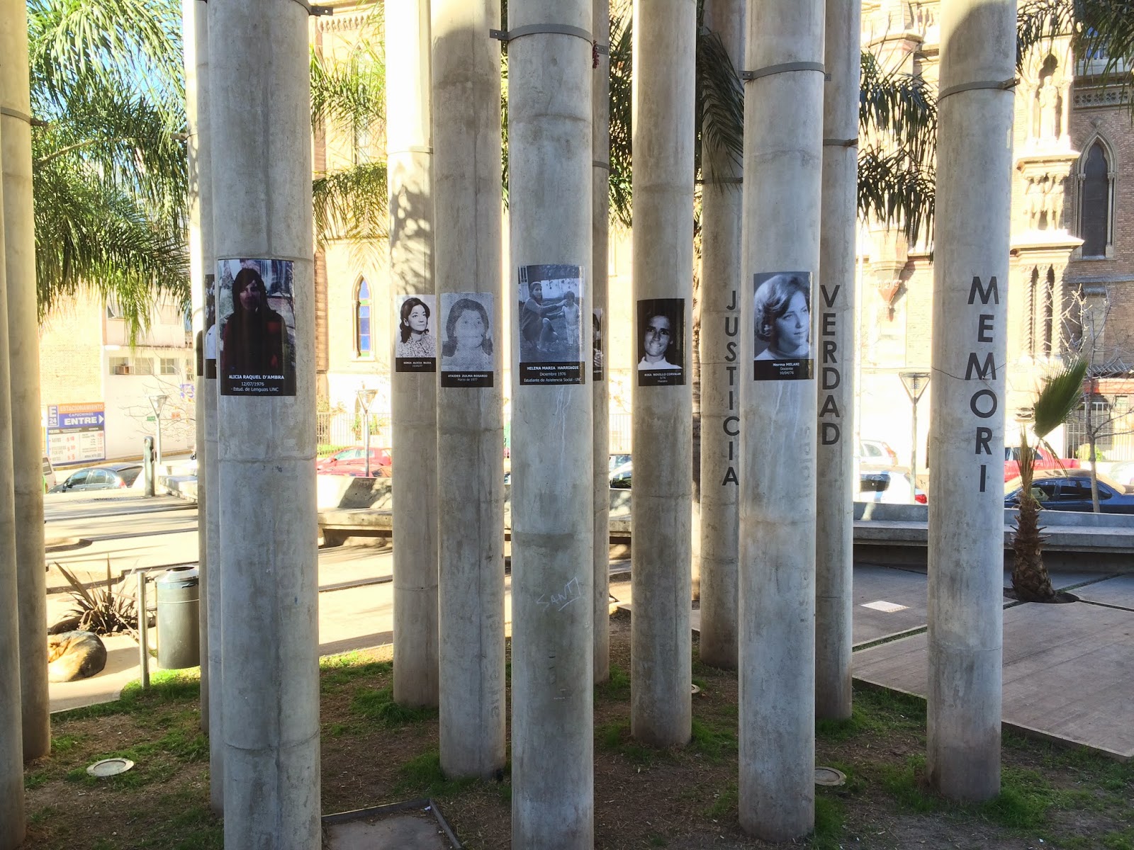 To mark the time when the building was used for much darker purposes, columns that form part of the complex are mounted with pictures of young women who experienced life at the prison, with some information about who they were and when they were disappeared. The words justice, truth and memory are also painted onto the columns.