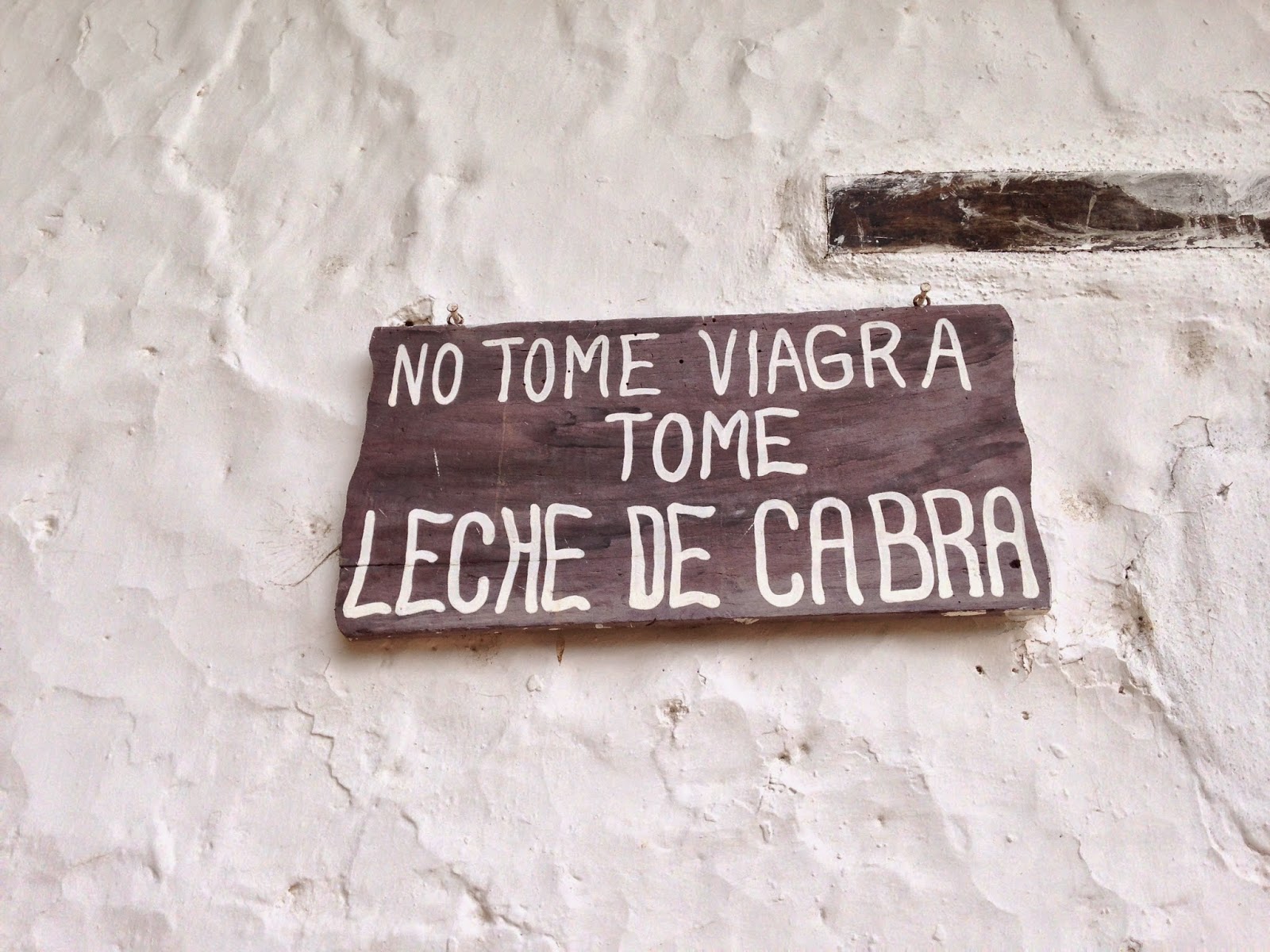 This sign, which translates as “Don’t take viagra, drink goat’s milk”, was on a wall in the small town of Guane, just outside of San Gil in Colombia.