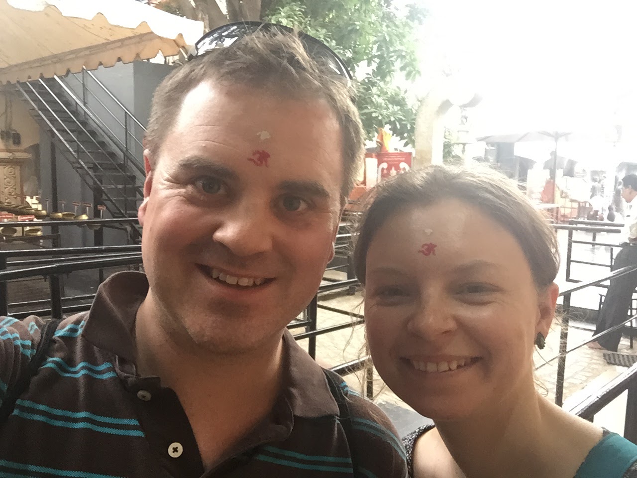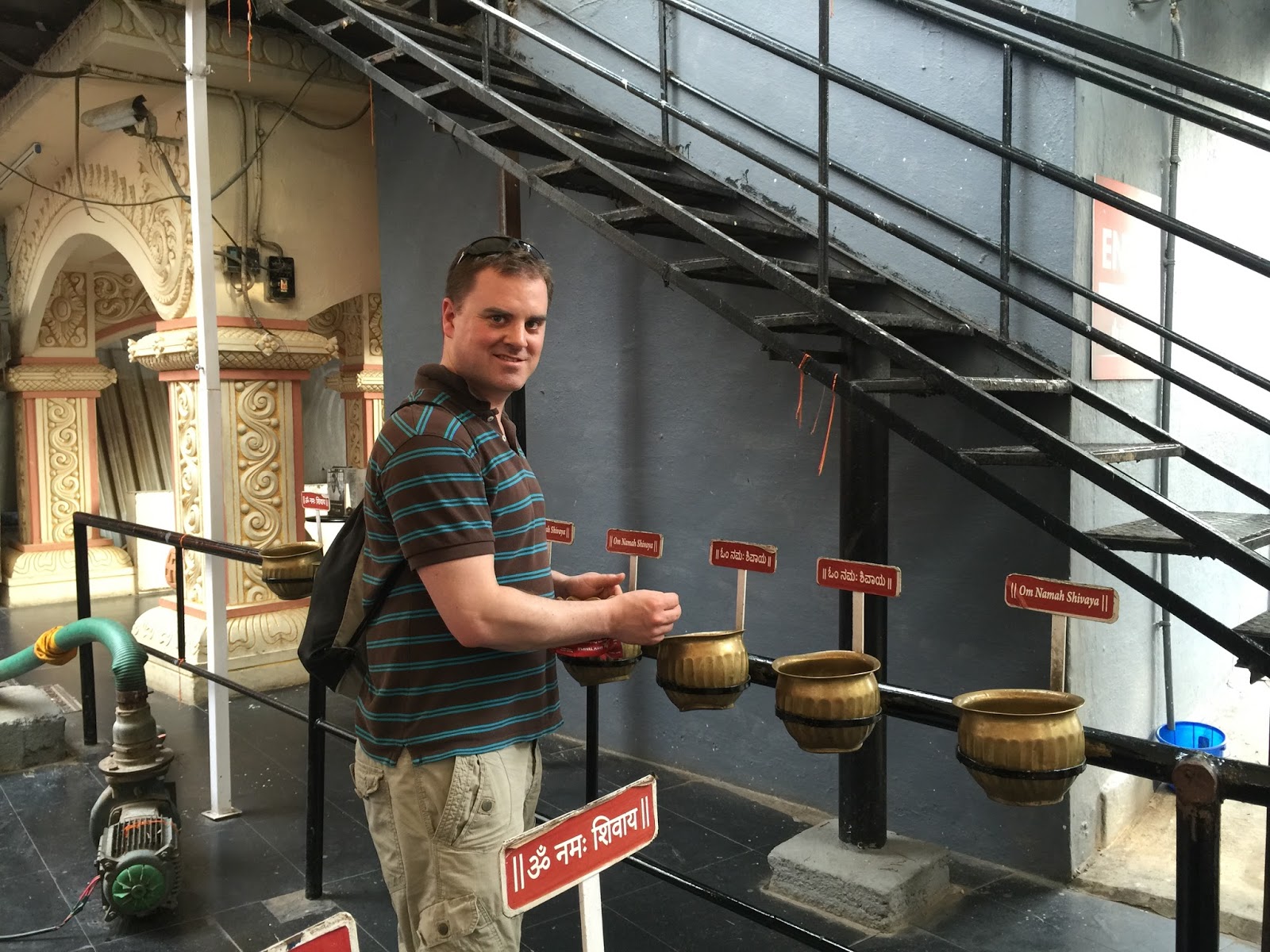 We were given a small tub of coins and had to put one in each of the holy bowls, while chanting, Om Namah Shivaya. I think we were supposed to clear our thoughts, but I got myself a bit confused when I stopped to take a photo of James and then couldn’t remember which bowl I had last put a coin in.